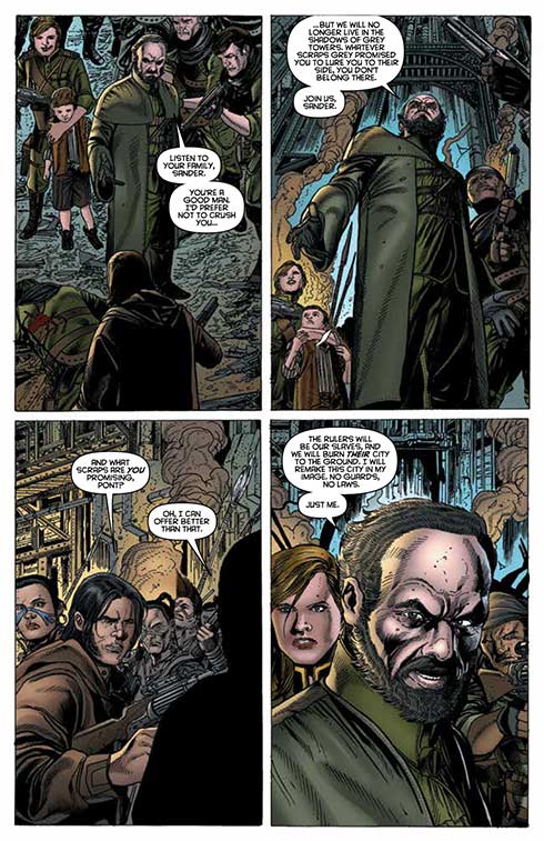 Sander Jorve is a reluctant hero shaped by a tough upbringing, trying to do his best for his family and a working-class revolution he supports. When asked by his wife’s brother, Kendal Kornick, to do the unthinkable and go undercover as a member of the Lantern City Guard, a relentless oppressive police force working for the Grey Empire, Sander must risk his family and his own identity for the chance to make a better world.